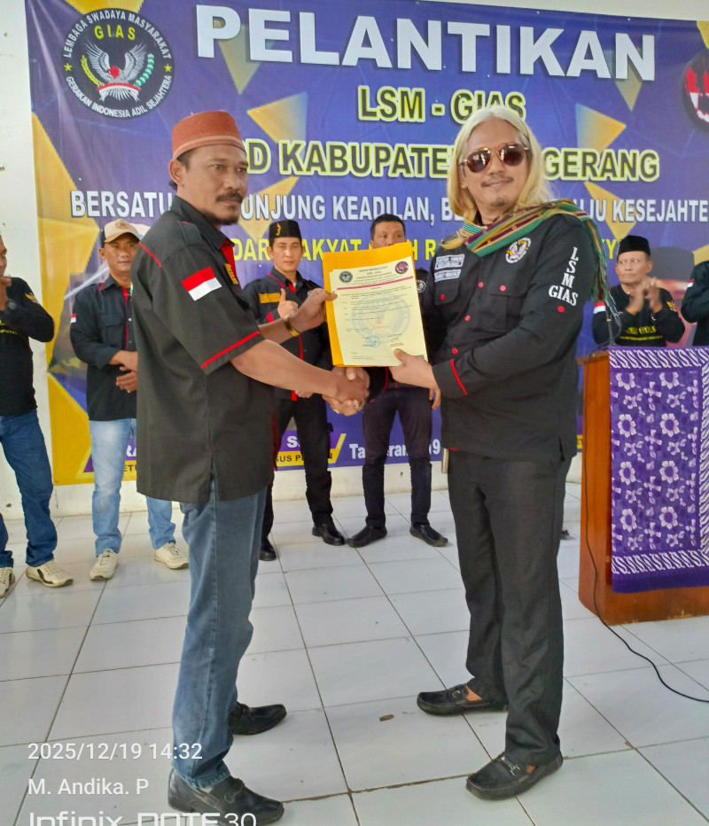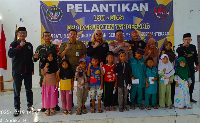 Lembaga Swadaya Masyarakat Gerakan Indonesia Adil Sejahtera (LSM GIAS) secara resmi melaksanakan Pelantikan Dewan Pimpinan Daerah (DPD) Kabupaten Tangerang pada Siang hari ini. Acara berlangsung khidmat, penuh semangat persatuan, serta dihadiri oleh berbagai unsur pemerintahan, Aparat keamanan, tokoh Masyarakat, hingga Kepala Desa se-Kecamatan Teluknaga, Jum’at (19/12/2025).