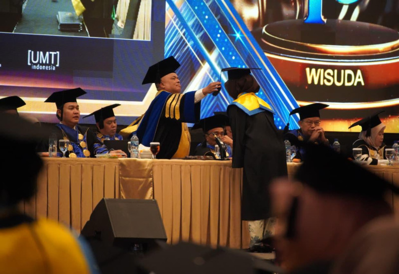 > “Hari ini bukan hanya menjadi momen perayaan akademik, tetapi juga tonggak lahirnya generasi baru yang siap memberi kontribusi nyata bagi Masyarakat. UMT berkomitmen mencetak lulusan yang tidak hanya unggul secara intelektual, tetapi juga berkarakter dan berjiwa sosial,” ujar Rektor Assoc. Prof. Dr. H. Desri Arwen, M.Pd., di hadapan Ribuan Peserta Wisuda.
