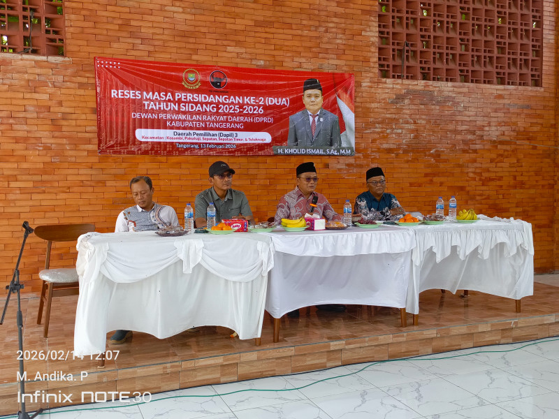 Wakil Ketua DPRD Kabupaten Tangerang dari Daerah Pemilihan (Dapil) III, H. Kholid, menggelar kegiatan Reses Masa Persidangan II pada Sabtu (14/2/2026). Kegiatan tersebut berlangsung di Kantor Sekretariat PDI Perjuangan Jl. Babussalam, Teluknaga, Kecamatan Teluknaga, Kabupaten Tangerang – Banten.