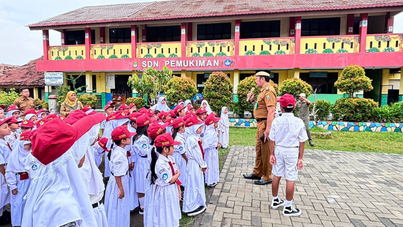 Online Indonesia Kab Tangerang -Senin ( 04/10/2024 ) Lurah Salembaran Jaya Kec Kosambi Kab Tangerang – Banten Ade Sunaryo S.Pd,M.M,mengahadiri Upacara Bendera di SDN Pemukiman sebagai Pembina Upacara.Upacara Bendera dihadiri Kepala Sekolah SDN Pemukiman Nawah S.Pd beserta para guru dan peserta Upacara.Upacara Bendera yang dihadiri Lurah Salembaran Jaya sebagai Pembina disambut antusias oleh murid murid SDN Pemukiman.