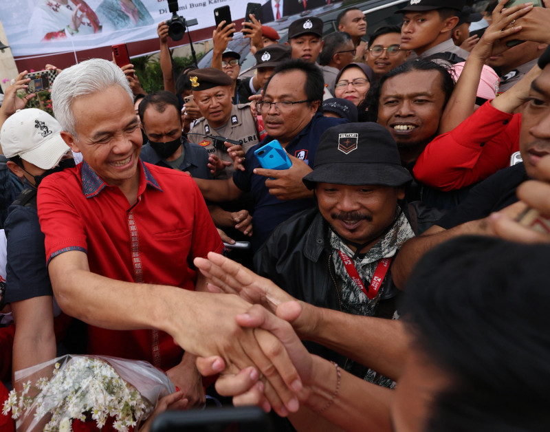 Benar saja, warga langsung histeris merangsek untuk bisa bersalaman pada Ganjar. Bahkan beberapa di antaranya nekat menembus petugas keamanan dan mengejar mobil yang membawa politikus berambut putih itu. Hanya untuk bersalaman.