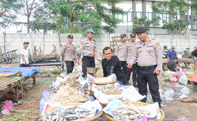 Personel Polres Metro Tangerang Kota melaksanakan kegiatan Patroli jalan kaki di keramaian Pasar Babakan Kota Tangerang, yang dikenal sebagai salah satu Pasar sayur mayur pusat keramaian Masyarakat.
