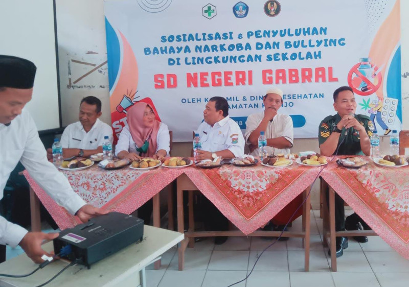 Menghindari kasus Narkoba dan bullying pada anak-anak, Personel Bintara Pembina Desa (Babinsa) Koramil 08/Kronjo Serka Lukman melakukan sosialisasi di SDN Gabral Desa Muncung Kecamatan Kronjo Kabupaten Tangerang, Rabu (18/10/2023).