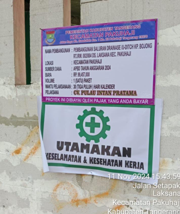 Tangerang Online-Indonesia.com -Anggaran Pendapatan Belanja Daerah ( APBD ) tahun 2024 untuk Ko Bojong RT 002/004 Desa Laksana Kec Pakuhaji Kab Tangerang – Banten di Duga pelaksanaannya tidak sesuai dengan pekerjaan yang ada dilapangan.