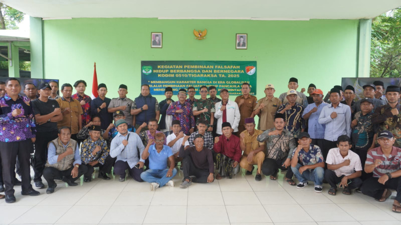 Kodim 0510/Tigaraksa menggelar kegiatan Pembinaan Falsafah Hidup Berbangsa dan Bernegara Tahun Anggaran 2025 di Aula Dharmawangsa, Kamis (16/10/2025). Kegiatan ini bertujuan memperkuat karakter dan wawasan kebangsaan Masyarakat melalui pengamalan Nilai-nilai Pancasila sebagai dasar kehidupan berbangsa.